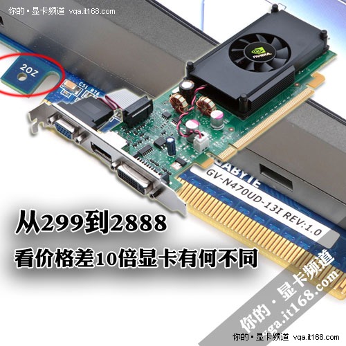 今天我们就来对比一下,299元的GT210和2888元的GTX470区别。接下来先介绍一下我们今天的主角技嘉GTX470显卡。
