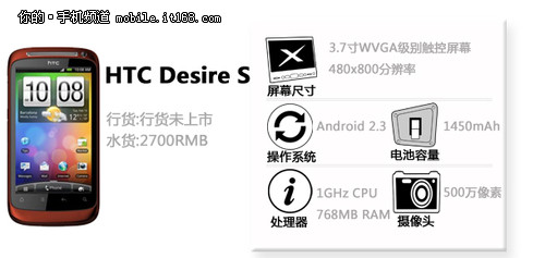 ▲HTC Desire S搭载最新Android 2.3操作系统