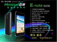 迈派科技目前发布的meepad note i5230就是这样一款5寸手机和平板的跨界产品,采用5寸夏普IPS多点电容屏,支持联通3G/2G和移动2G的通话、短信上网功能,通话操作方式和效果达到了目前品牌手机同步水平状态,同时在平板娱乐和实用功能上加强了更多的功能,比如内置了CMMB模拟电视,可在不收费的情况下观看多个电视节日,内置了GPS导航模块,方便出行时使用,其它功能上如FM收音机,3D加速,陀螺仪,光感距离感应器等,meepad note i5230手机平板系统采用android2.3系统,后续一个月内将直接升级至安卓4.0系统,现有系统通过迈派科技深度优化和UI上的设计,已非常适合国人使用习惯。