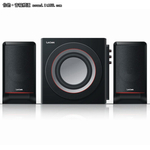 乐天下E100K音箱设计风格简单稳重,黑色音箱面板时尚简约不失大气。采用了纯木质箱体材质设计,既保证了音箱的良好音质,又使音箱看上去具有档次感。乐天下E100K音箱的控制调节旋钮均分布于低音炮的侧面,使用起来轻松顺手。