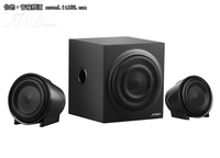 奋达W130BT的低音音箱外观设计稳重,很容易和家居风格相融合,三只箱体前面板都设计了波浪形金属网罩,可以有效防止外界物体的碰撞,从而保护了音箱单元不受损害。奋达W130BT的低音音箱采用了正方体结构设计,细节做工不错,贴皮处给人严丝合缝的感觉。其内置了4英寸超重低音扬声器单元,箱子的体积相对较小,放置在桌上毫无压力。低音音箱的一侧设置倒相孔,有效提升低频效果,尤其是在欣赏电影时,可感受更为震撼的低频。