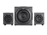 从单元性能参数方面来看,耳神ER2537以重低音、高性价比为主打,单元配置非常抢眼,低音炮采用了5.25英寸低音喇叭单元,配合木质箱体,可有效的抑制向内谐振,使得低频更加强劲有力。另外,两个卫星音箱采用3英寸中高音单元,体积小巧,,声音的高频表现效果更好,适合近场聆听,也非常适合游戏、电影场景的表现。