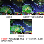 从上面的对比中我们可以看到RTS模式的亮度比普通模式亮度对比度全满还要亮,但不会整屏变亮,这是明基独有的的特殊的技术,其他普通显示器无法做到。