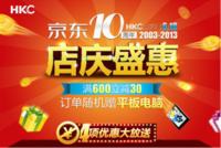 HKC携手京东商城618店庆,四项优惠大放送!全网价格最底,满600立减30,微博分享赠话费,订单抽奖送平板!还等什么,赶快来参加吧!