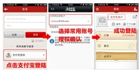 首先,在账号登陆时选择“支付宝登录”,我们发现屏幕从丁丁优惠跳转到了“支付宝”的APP中,选择常用的支付宝账号并确认授权后,即成功以支付宝用户的身份登陆了丁丁优惠。这里需要强调的是,如果手机里没有安装支付宝客户端,或者安装没有登陆过,那么授权时需要输入密码以确认身份。