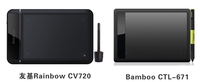 下面,我们以友基Rainbow CV720以及Bamboo CTL-471两款数位板,从外观、配置、以及使用体验进行对比,为大家介绍一下这两款全新发布的数位板产品的优势所在。