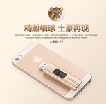 典雅高贵的金色,精细的钻石般切割工艺,为了保证整个造型的整体感和美观,忆捷F6土豪金采用了隐藏式USB接口推拉设计。让整体更加统一和谐,也免去了丢失盖子的烦恼。