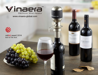 Vinaera是全球创新的电子气压醒酒器,它内置了一个空气泵,通过气压将葡萄酒压出,是传统的红酒增氧器6倍以上的效果。Vinaera的专利设计是传统葡萄酒增氧器6倍以上的效果,将vinaera置入葡萄酒瓶口,按下上方按钮,vinaera会以28.5ml每两秒的速度提供被充分唤醒的葡萄酒。