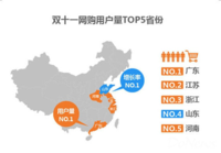 “双十一”通过手机淘宝进行网购的TOP5省市为:广东、江苏、浙江、山东、河南。其中,其中山东、河南增长率最高。