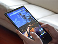 由于扬声器是设置在前面的,所以如果说放置在桌子上看电影或听音乐的话效果确实不错,但是横向持握确实有手挡住了扬声器孔的情况。