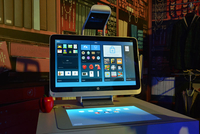 惠普Sprout投影会将画面投射到一块材质有点像鼠标垫的东西上,透射出的区域可以像使用电容触控屏那样子上面进行点击、推拽,这一区域面积有20英寸,支持20触摸操作,本以为用起来会出现卡顿、拖着推着就断了的情况,可实际使用过程中完全没有出现这些问题,编辑也亲自试用了一下,确实很棒,用起来很顺畅,现场的工作人员借助专门的软件来了一段精彩的表演。