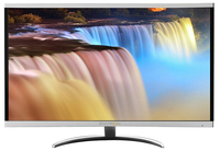 ENVISION P323WDC曲面显示器,10.6mm超薄机身设计,创新的四边框拆边组合结构方式,上下银色边框搭配左右侧黑色边框组合,完美重现电影胶片的临场感,纯白后壳,大气简约,经典时尚!