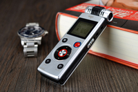 带有背光的显示屏可以显示录音时间、录音时长、开机画面、关机倒计时等各种画面。通过显示屏可以对录音笔进行各种设定,包括添加书签、复读、声音设置等各种功能。全中文说明非常好上手,常用的录音和播放功能都有对应的实体按键来实现,可以说录音笔是菜鸟式的操作,专业式的录音。