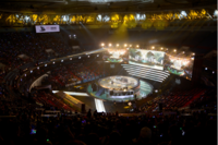 (LPL春季赛决赛现场,拯救者展台吸引了诸多玩家前来围观体验)