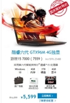 戴尔Inspiron 灵越15 7000系列游匣7000湛黑整体外形为经典的黑色,机身很纤薄,厚度只有25.3mm,该机配有15.6英寸的屏幕,屏幕很大但是机身小巧,不但保证了视觉还优化了触觉,分辨率为1920x1080,显示比例为16:9,保证了的超高的画质,给人很舒适的视觉享受。目前,该款本在戴尔官网持续疯惠,售价仅为5599元,且现在购买“立减300元(折扣已包含在价格中)。+【随机购+99元可升至3年上门服务 (价值376元)】+使用优惠券P9?FNTQWPPS6?1可再减100元。+<免费礼包>买即送包鼠套装!+【送街霸游匣游戏礼盒(每天限量10份)】+【加99元可升级价值499元SSD硬盘】”,有意向购该款笔记本的顾客抓紧时间拨打客服专线4008849435/8008582903或登陆www.dell.com.cn/go来了解更多关于这款笔记本的信息。