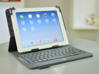 今天为大家带来的是罗技刚刚推出的UNIVERSAL FOLIO uK1050BK键盘保护套(后文简称uK1050BK键盘套)。这是一款适应目前市场上大多数9到10寸平板电脑的键盘套,采用蓝牙连接,平板主机巧妙地利用“四点抓握”的方式固定到键盘套上,十分稳定。
