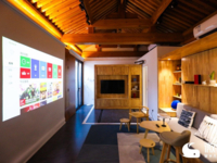 除了大屏通话,遥控器唱K,语音找遥控器,现场用户还一起体验了一把最亮投影打造的“白日梦影棚“,让微鲸·未来之家的四合院秒变“Color Home”。