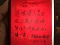 近日,无锡市惠山区惠韵家园的许阿婆感到十分气愤。在家中95岁母亲去世出殡前一日,15楼邻居在电梯附近贴出了禁止本幢楼逝者乘坐电梯的告示。顾及老太太生前和气的脾性,十几个人将棺材从17楼楼梯搬下,但也因此让棺木受到了损伤。