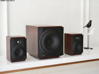 惠威M-80W依然是由两只卫星音箱和一只有源超低音组成,从外观上看M-80W虽然整体风格依旧古朴典雅,但跟前作M50W相比少了一分圆润感,M-80W的整体造型更加棱角分明,在延续经典的同时也更具现代感。重量方面有源超低音分量十足,达到了12.4KG,而卫星箱则较为轻便小巧,仅重1.9KG,放置在桌面上并不会太占空间。