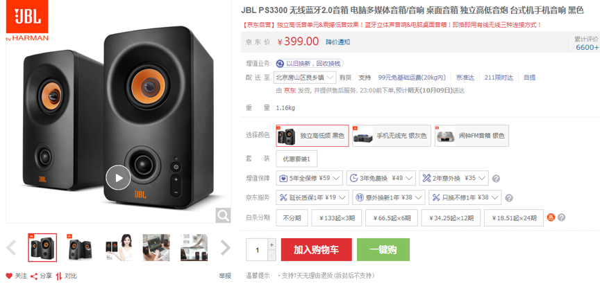 JBL PS3300 无线蓝牙2.0音箱 京东售价399元