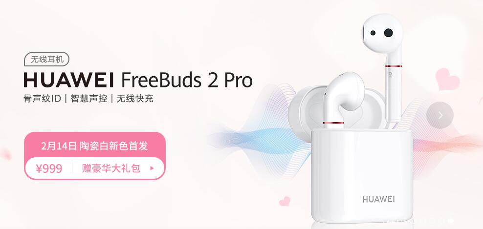 【IT168 资讯】2月14日是西方情人节,不少产品都针对女性推出了不少定制配色,华为商城官微也在近日宣布推出华为FreeBuds 2 Pro无线耳机陶瓷白配色版本,售价999元,在配色上相信会更讨妹子喜爱。