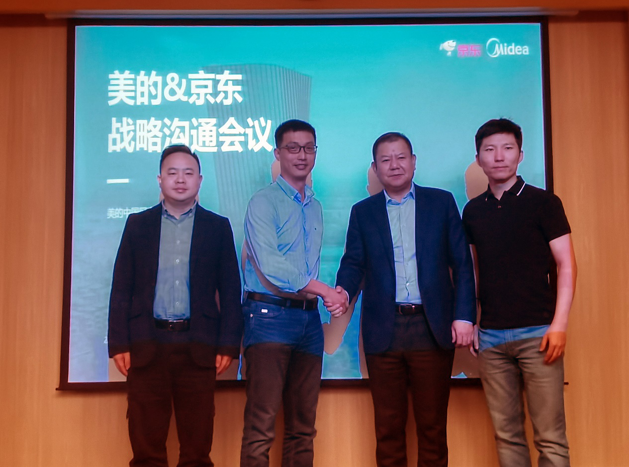11月29日,京东集团高级副总裁、京东零售集团3C电子及消费品零售事业群总裁闫小兵带队到访美的总部,与美的集团董事长兼总裁方洪波、美的集团中国区域总裁吴海泉会晤。双方就未来在C2M反向定制、线下板块以及智能供应链体系的深化合作进行了全面规划,当场确定了美的集团旗下全品牌全品类未来3年在京东平台实现1500亿元销售额的中期目标。目前美的集团旗下美的、小天鹅、华凌、AEG、COLMO、东芝生活电器、布谷等全部家电品牌均已入驻京东平台,将在未来3年共同完成1500亿元的销售目标。
