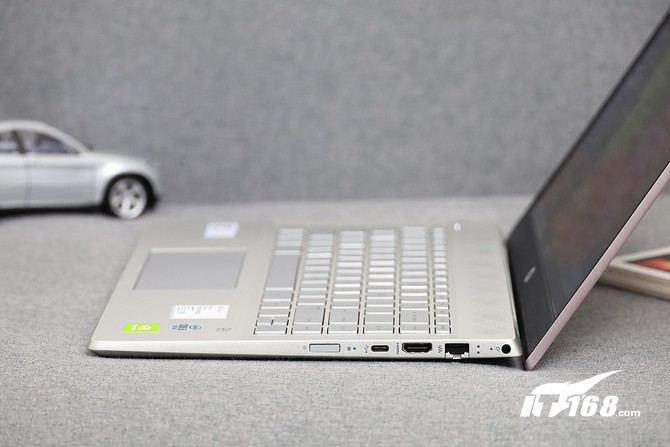 银色的C面既有金属的质感,也更优雅时尚,3D一体成型技术,科技感十足,还不易积累灰尘;CNC钻石切割工艺触控板也带来较好的触控体验;合适的按键间距,打字速度很快也不会轻易误触,同时搭配LED背光,无惧黑暗环境,随时随地都能轻松编辑文档。最令人眼前一亮的是靠近屏幕处极具艺术感的菱形扬声器格栅,通过自然光的反射产生菱形的视觉效果,给予用户亮暗交错的独特体验。菱形的小孔设计,不仅起到装饰的作用,还内藏B&O音响,设计非常巧妙。