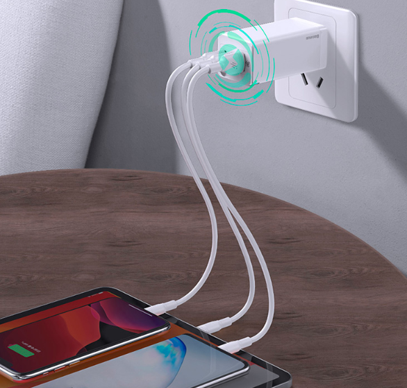 没想到真的有,早在去年,倍思就发布了全球先进氮化镓快速充电器,采用多接口设计,兼容市面上大多数主流快充协议,上到笔记本电脑,下到手机、蓝牙耳机等设备都可以使用倍思氮化镓充电器进行充电。充电器内置了智能识别芯片,能够识别对应接口设备的协议,自动调节电流、电压和功率,让设备处于安全的充电状态中。