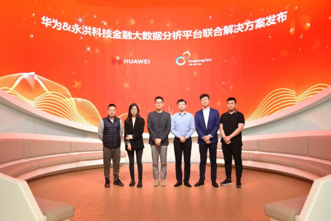 2021年4月13日,永洪科技携手华为在华为苏州研究所正式发布金融大数据分析平台联合解决方案,以业务为导向,数据为驱动,实现数据价值与业务的深度融合。永洪科技副总裁兼战略生态部总经理石虎、销售总监朱斌、高级行业咨询专家黄灿,以及华为中国政企金融行业解决方案部数据业务总监王明迪、华为中国政企OpenLab金融行业解决方案架构师杨力凡、华为中国政企OpenLab大数据解决方案架构师周源杰等嘉宾共同出席了发布仪式。