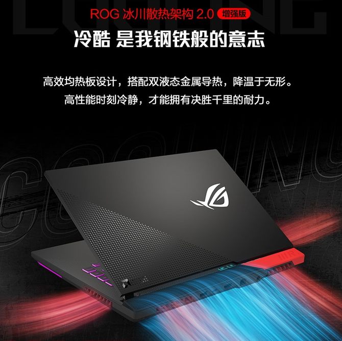 如此豪华的配置、澎湃的性能,ROG魔霸5R在散热方面同样给予了顶级配备。其内置了独家冰川散热架构2.0增强版,采用了均热板散热设计与双风扇四出风口的豪华配置,为双A芯片的凶猛性能保驾护航。此外,ROG还首次搭载了双液金设计,使用暴力熊液态金属覆盖GPU和CPU,其导热效率高达73W/mk,是传统硅脂导热的10倍以上,最多可降低主要部件温度达 14℃,让高能芯片持久稳定运行。