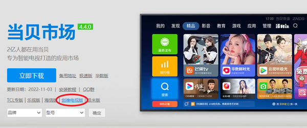 电脑浏览器搜索当贝市场,进入官网,下载创维电视版当贝市场安装包。下载完成后,将安装包复制到U盘。