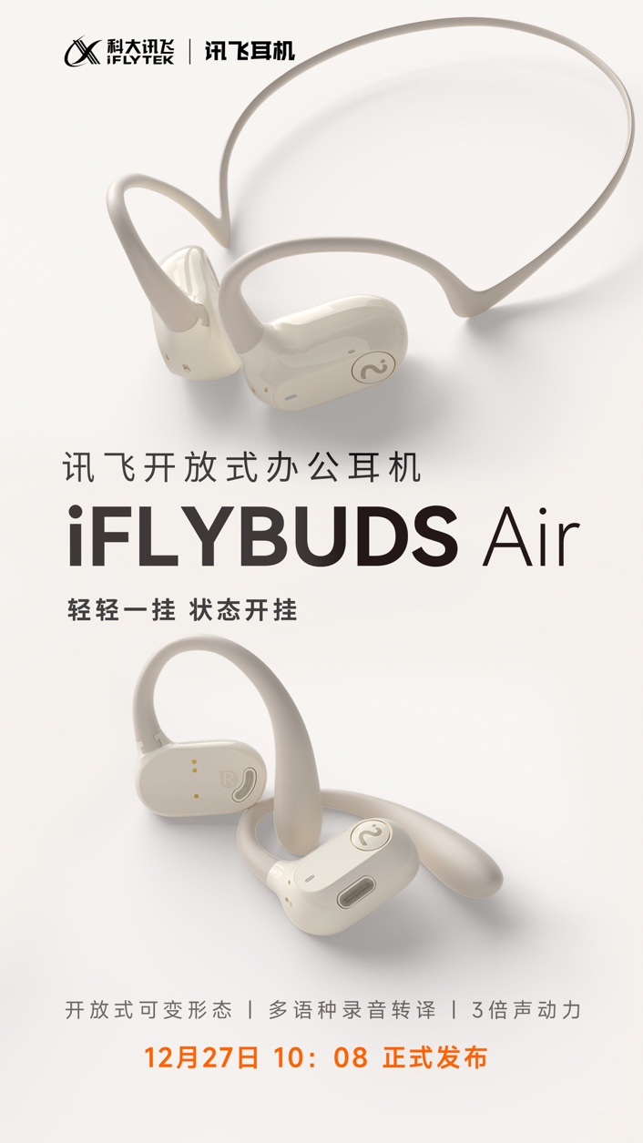 12月27日,由科大讯飞孵化的人工智能硬件公司--未来智能正式发布全新开放式办公耳机iFLYBUDS Air和未来智能会议狗两款新品。讯飞开放式办公耳机iFLYBUDS Air承袭iFLYBUDS系列办公耳机的核心AI功能,具有开放式不入耳、形态可变、实时录音转写转译三大特点,能兼顾办公、通勤及运动等场景需求,适合因工作和生活需要长时间佩戴耳机开会、打电话,喜欢听歌及户外运动的的职场办公人群。未来智能会议狗,专为高效桌面会议而生,搭配iFLYBUDS全系列耳机使用,就可以直接在PC端完成会议及音视频录音实时转写转译和修订分享不再需要通过手机进行中转,进一步提升桌面办公效率。