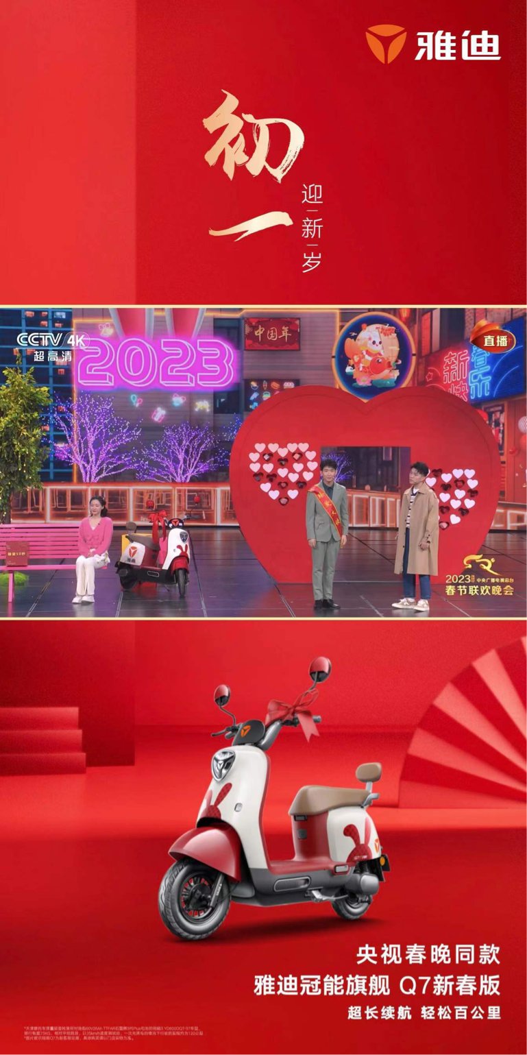 今年除夕之夜,从《Young在春晚》到央视春晚舞台,雅迪成为春晚“最忙”明星,秉承“让亿万人享受美好出行”的初心使命,与全国人民共同见证日新月异的美好生活,展示了中国品牌持续向上的力量。
