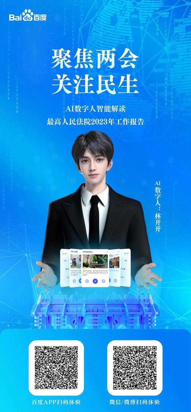 至于林开开就更厉害了,在今年两会期间,他依托其智能化的能力,向公众在线解读最 高人民法院2023年工作报告。通过对报告进行深度学习,数字虚拟人林开开将万余字的报告简化为千字,便于公众快速了解报告重点内容,并可根据网友提问快速检索、与网友进行语言交互,讲解报告相关内容,推动最 高法院工作报告以更加生动、便捷、有趣的方式触达公众,打造报告解读AI新范式。