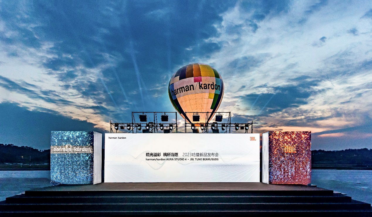 随着哈曼大中华区品牌代言人成毅的惊喜亮相,「琉光溢彩 璃所当燃」2023哈曼新品发布会也拉开了序幕。巨型热气球浪漫空降,和现场的水幕投影交相辉映,将舞台、水景灯光及音乐声效巧妙融合,相互交织打造出一场奇幻的视听盛宴。让观众沉浸在氤氲的水幕和声光中,引发无限想象,尽显品牌的匠心独运与创新之美。