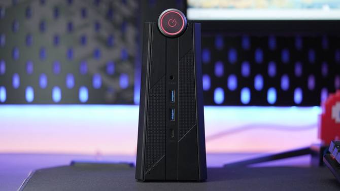 与市面上大多数迷你主机的方盒式造型不同的是,AOC小苔藓M9采用的是更接近于传统台式机的立式造型,只不过它整体比传统机箱变小了好几倍。