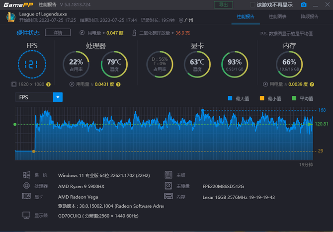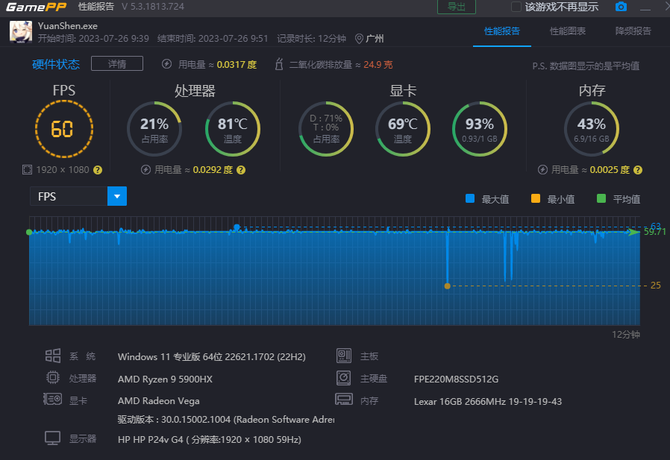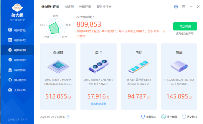 性能:标压AMD Ryzen9 5900HX超能打