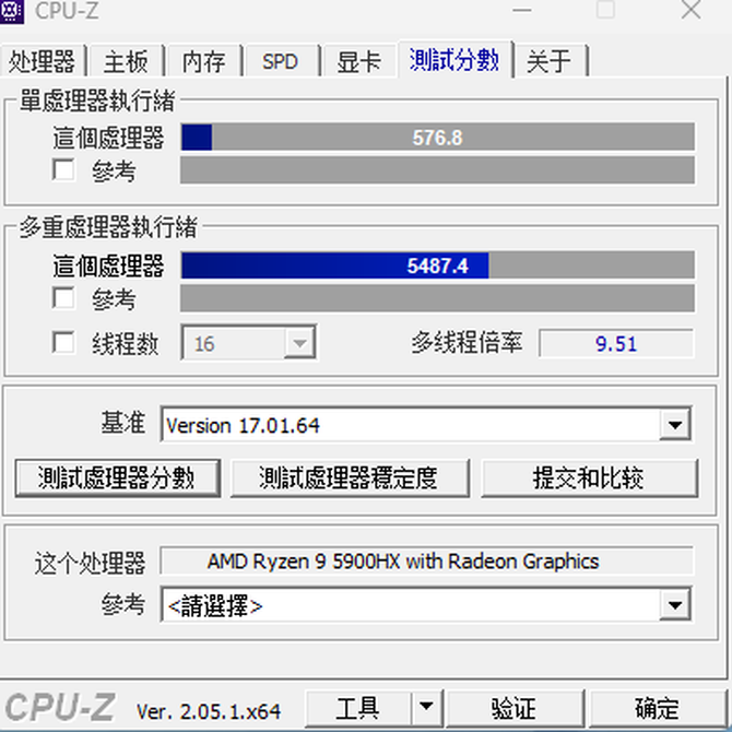 CPU-Z单核分数为576分,多核分数则是5487分。