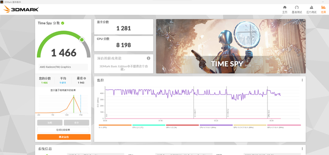 在3D Mark Time Spy和 Fire Strike两项测试当中,MOSS小苔藓 M9的分数分别是1466分和3607分,这个表现用来玩一些主流网络游戏,通常都是足够流畅的。