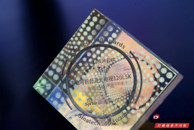 凭借“可折叠入户”的突破性创新,12月21日,海信可折叠激光电视120L5K斩获新浪2023科技风云榜“年度创新产品”。