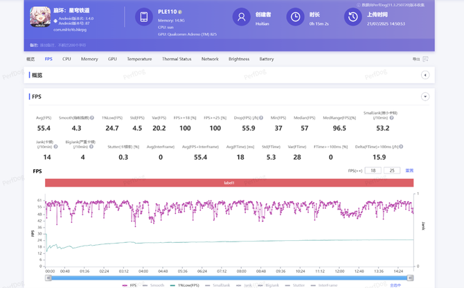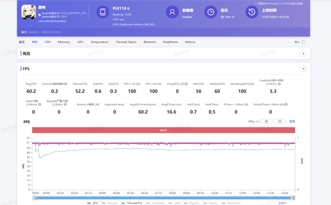 下面来看实战测试。我们分别选择了《王者荣耀》,《原神》与《崩坏:星穹铁道》作为轻压力、中负载与高负载的代表,并用性能狗Perfdog进行记录测试。