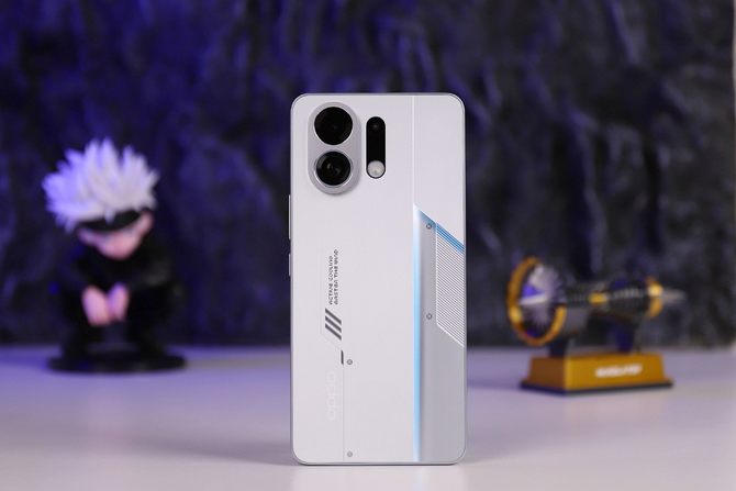 此外,OPPO K13 Turbo Pro拥有骑士银、初号紫、黑武士三种配色。我们手上的是骑士银配色,金属质感浓烈,光影流转之下蓝银交错,显示出OPPO K13 Turbo Pro的狂暴性能。