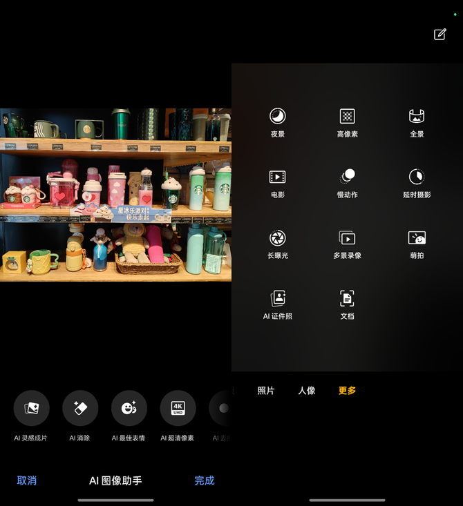 作为一台主打性能的手机,OPPO K13 Turbo Pro也在影像玩法与算法上给足了诚意,其搭载OPPO旗舰系列备受好评的AI图像助手功能,可以一键完成二次修图,降低摄影门槛;同时也拥有AI高像素、慢动作、AI证件照等多样化的玩法。