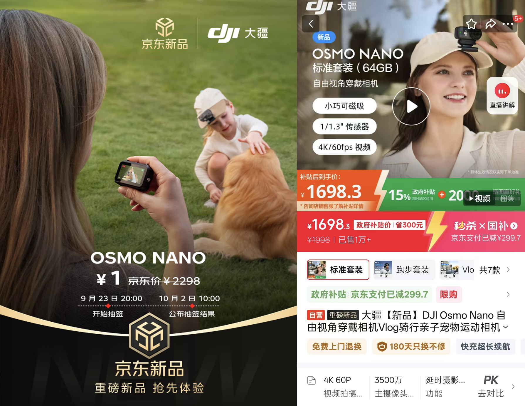 目前,大疆Osmo Nano已上线京东,用户打开京东APP搜索“大疆Osmo Nano”即可直达购买页面。10月2日10点将公布新品抽签结果,时间有限,想购买的朋友千万别错过,打开京东参与新品抽签,有机会1元把这款Vlog神机带回家!