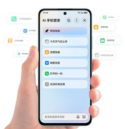 其中,大屏AI手机荣耀畅玩70 Plus侧边配备实体AI键,只需按一下实体AI键,手机页面上就会出现清理加速、调整亮度、调整字体等常用操作指令。同时,通过荣耀畅玩70 Plus的AI语音,可轻松设定闹钟,还可说出外卖、买菜或买药的具体需求,将直接唤起京东APP页面,自动搜索和展示相关商家内容,用户只需要选择并下单支付即可。AI语音还可识别方言,全国各地用户能轻松使用。