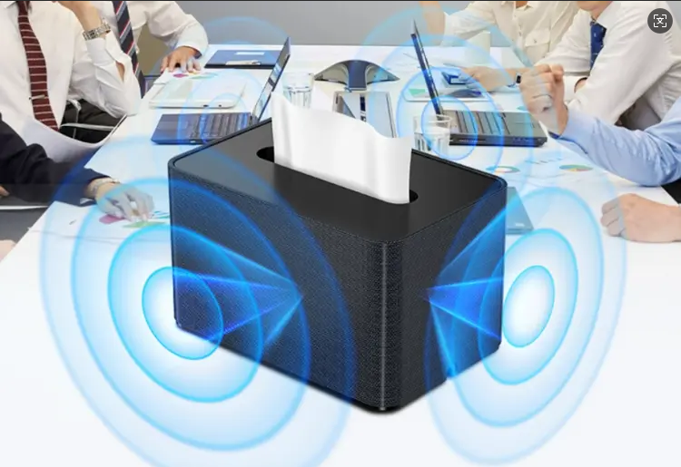 场景化伪装设计则让“加密声场”实现隐形融入。科密将录音干扰器巧妙设计,伪装为纸巾盒、蓝牙音箱、车载香薰、车载净化器等日常物品,外观与普通生活用品无异,可无缝适配会议室、办公桌、车内等多种场景。以RP80 Pro为例,其纸巾盒造型自带抽纸功能,即便放置在洽谈桌中央,也不会引起他人怀疑,真正实现“防护于无形”。