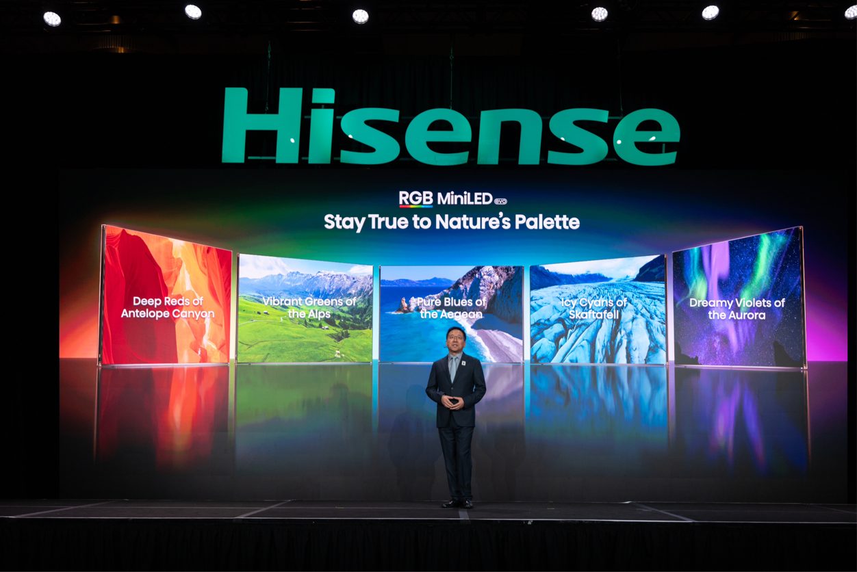 为了打破传统Mini LED和OLED的色彩、能耗及视觉舒适局限,进一步提升大屏时代显示设备的用户体验,海信一年前开创并全球最先量产了RGB-Mini LED电视,这一创新技术随着全球TOP5电视品牌悉数布局,迅速成为全球高端电视的趋势热词。“RGB与Mini LED的结合,是一场颠覆性的变革。”海信视像科技总裁李炜在今年CES的展前发布会上表示,为了还原那份无限趋近于肉眼所见的极致真实,全新一代RGB-Mini LED技术带来了三大进化。