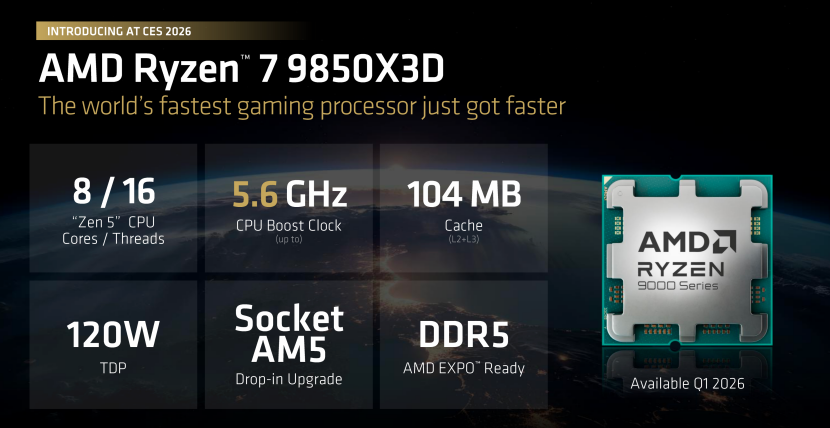 每年的CES都是PC玩家的一场盛会,上游厂商都会选择在这个时间节点上发布自家的最新技术和新品,AMD这次也在CES 2026带来了全新的桌面级处理器新品,那就是全新的AMD锐龙7 9850X3D,另外还有桌面显卡的FSR Redstone技术。