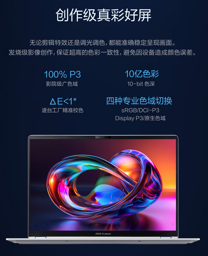 推荐理由二:屏幕素质越级。华硕出了名的“华硕好屏”在这款机器上也没缩水。2.8K 120Hz OLED面板,峰值亮度1100尼特,ΔE<1的逐台校色。对于要做设计、修图的创作者来说,这块屏幕的价值至少值2000块。再加上全金属机身仅1.39kg的重量,性价比直接拉满。