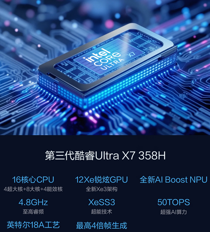 如果你觉得14寸不过瘾,想要更大的视野和更强的图形性能,那一定要看看这台华硕无畏Pro16 酷睿版2026。它搭载的是规格更高的酷睿Ultra X7 358H处理器。